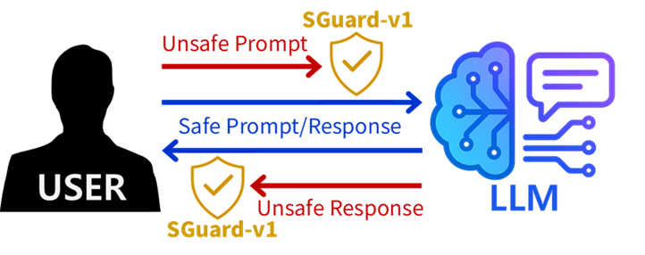 While maintaining light model size, SGuard-v1 also improves interpretability for downstream use by providing multi-class safety predictions and their binary confidence scores. We release the SGuard-v1 weights here under the Apache-2.0 License to enable further research and practical deployment in AI safety.