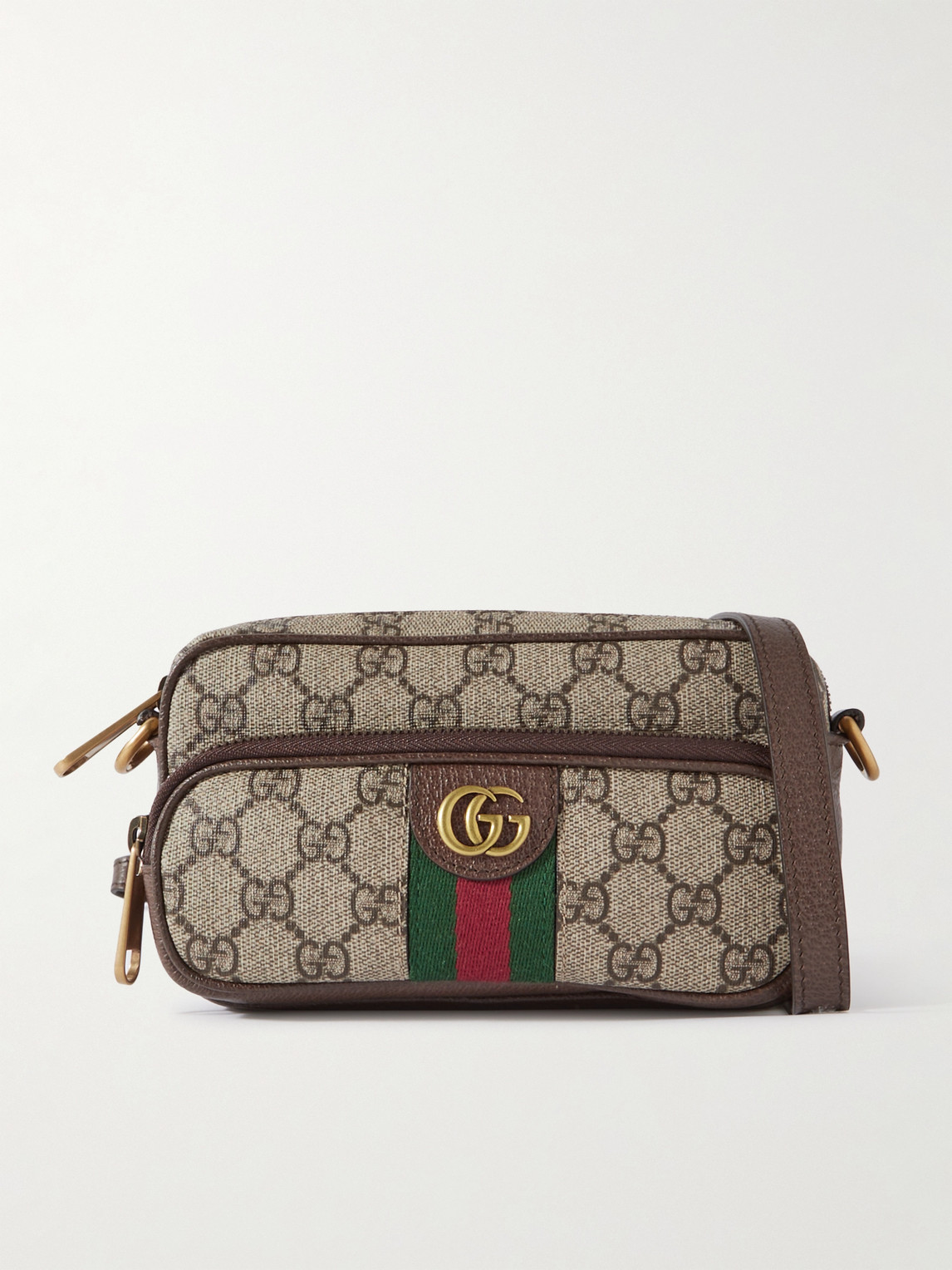 Ophidia Mini Leather-Trimmed Monogrammed Coated-Canvas Messenger Bag