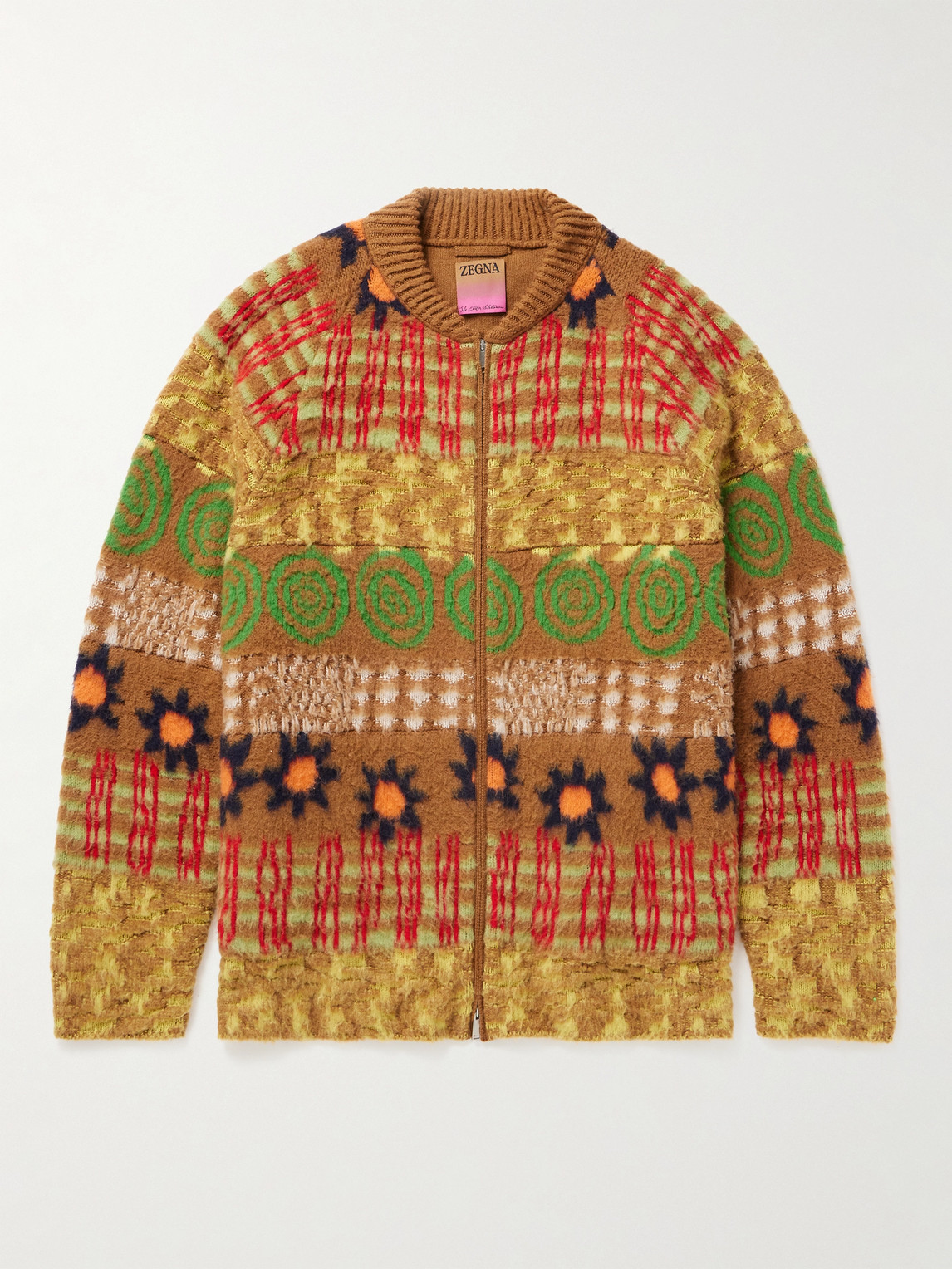 Intarsia Oasi Cashmere and Wool-Blend Zip-Up Cardigan